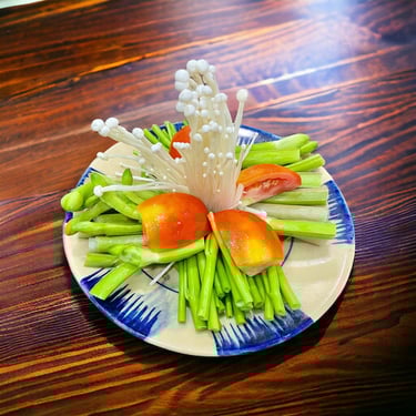 Rau ăn lẩu có: Bắp mỹ, rau muống, bạc hà, mấm kim châm và rau cải thảo.